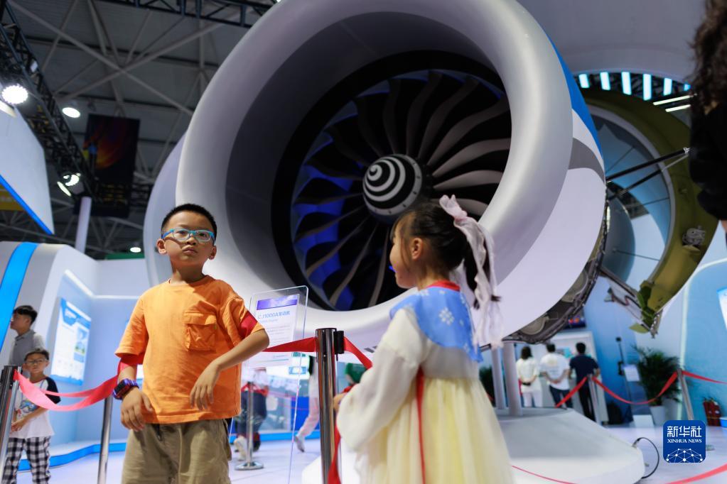 5月26日,兩名小朋友在“數博會(huì )”上參觀(guān)國產(chǎn)航空發(fā)動(dòng)機。