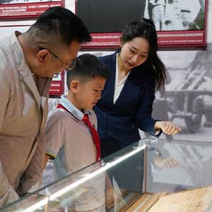 在中共一大紀念館的展廳內,革命先烈秦鴻鈞曾使用過(guò)的收發(fā)報機靜靜陳列。臨近上海解放74周年,秦鴻鈞烈士后人來(lái)到紀念館,瞻仰革命文物,感悟紅色歷史。
