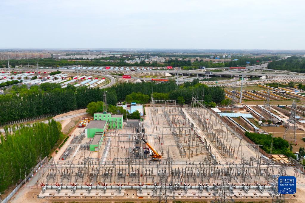 5月27日,電力工人在工程現場(chǎng)進(jìn)行檢修作業(yè)(無(wú)人機照片)。