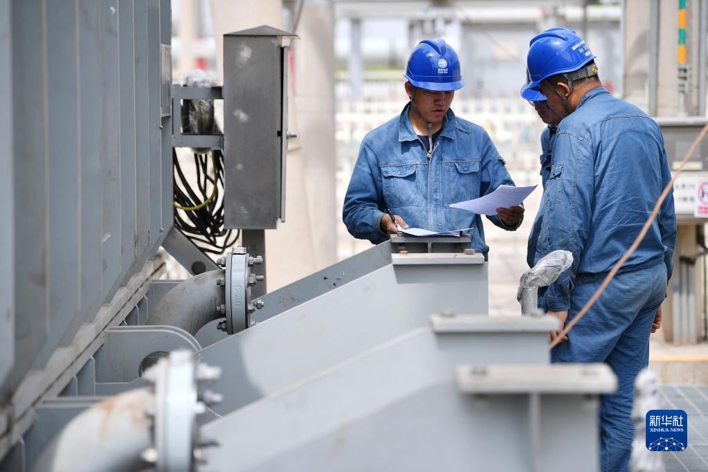 5月27日,電力工人在工程現場(chǎng)進(jìn)行檢修作業(yè)。