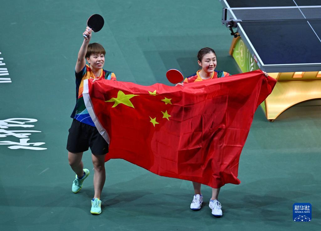 當日,在南非德班進(jìn)行的2023年世界乒乓球錦標賽女子雙打決賽中,中國選手陳夢(mèng)/王藝迪以3比0戰勝韓國選手田志希/申裕斌,奪得冠軍。