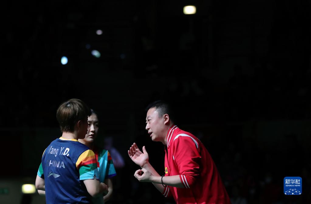 5月27日,教練馬琳(右)在比賽間隙指導陳夢(mèng)(中)/王藝迪。