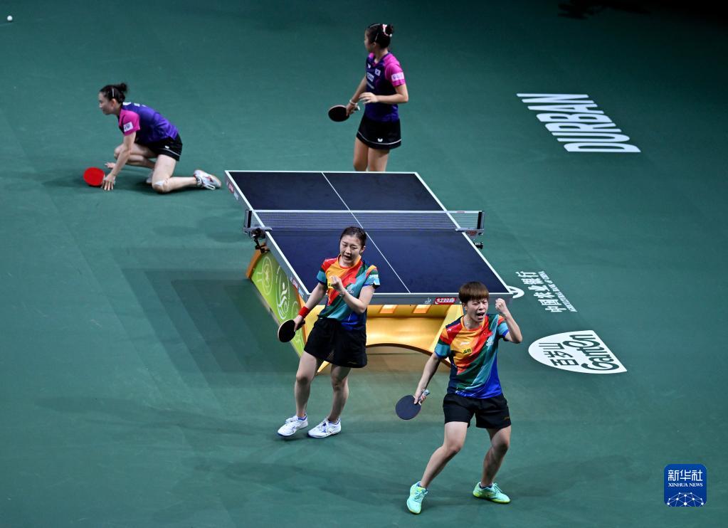 當日,在南非德班進(jìn)行的2023年世界乒乓球錦標賽女子雙打決賽中,中國選手陳夢(mèng)/王藝迪以3比0戰勝韓國選手田志希/申裕斌,奪得冠軍。