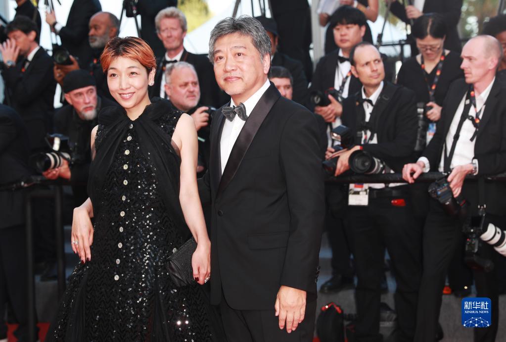 5月27日,日本影片《怪物》的導演是枝裕和(右)和演員安藤櫻在法國戛納國際電影節踏上閉幕式紅毯。