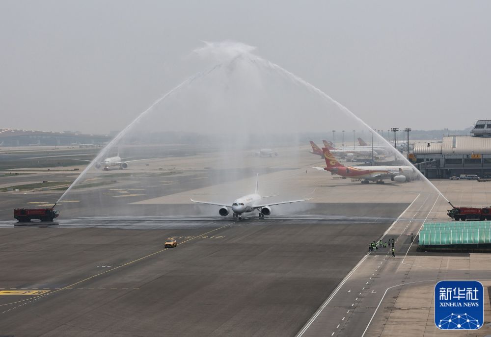 5月28日,C919首個(gè)商業(yè)航班東航MU9191在北京首都國際機場(chǎng)平安降落。新華社發(fā)(魏萌攝)