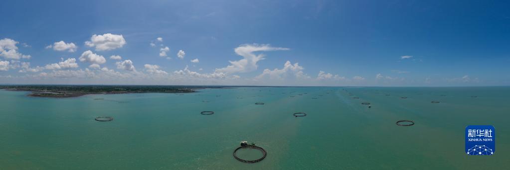 湛江徐聞西連鎮的“海上牧場(chǎng)”(5月27日攝,無(wú)人機全景照片)。