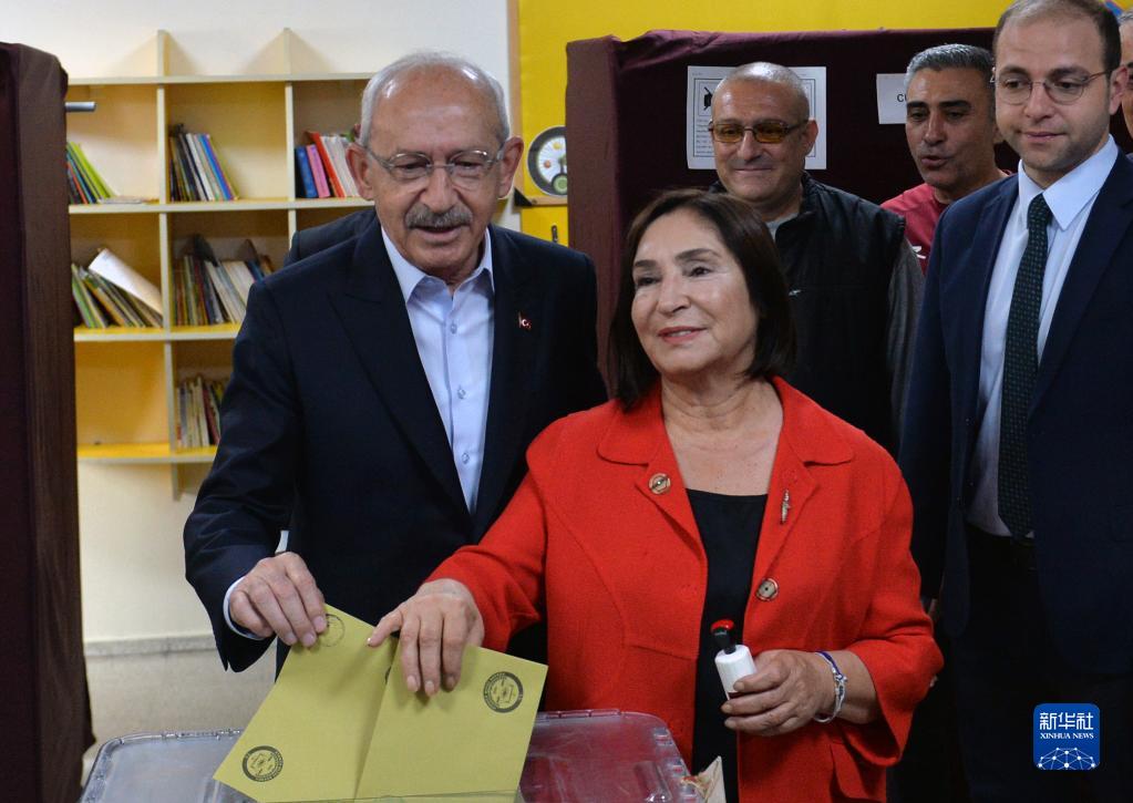 5月28日,土耳其反對黨陣營(yíng)“民族聯(lián)盟”候選人克勒奇達爾奧盧(左一)在安卡拉參加投票。