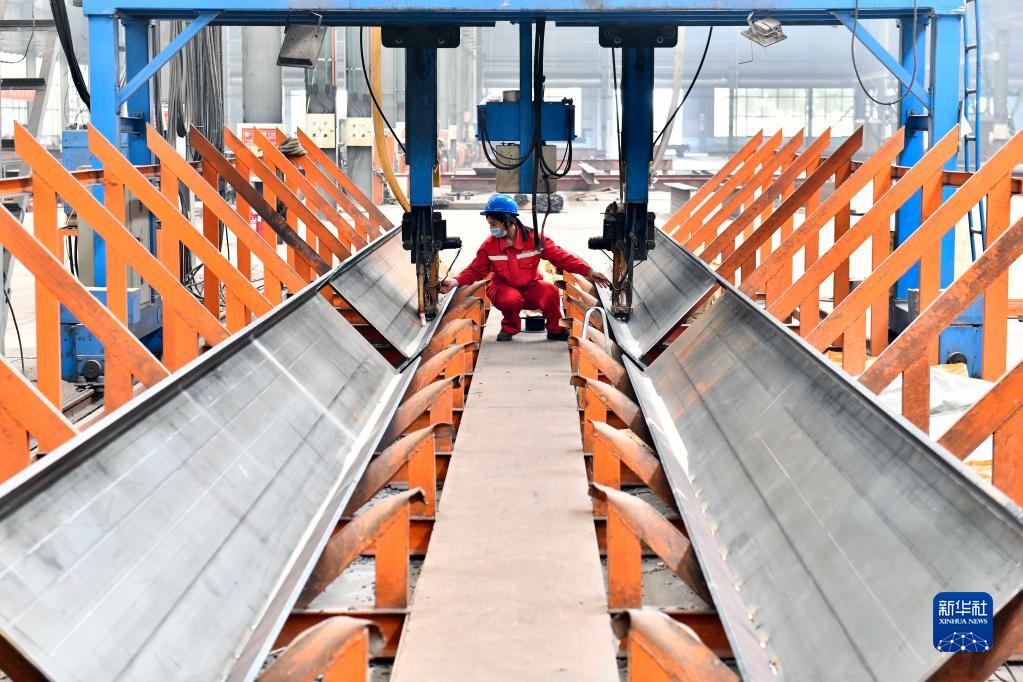 5月28日,在嘉祥縣國家級裝配式建筑產(chǎn)業(yè)園,工人在焊接裝配式鋼結構框架。