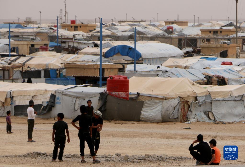 這是5月28日在敘利亞哈塞克省拍攝的霍爾難民營(yíng)內的人們。