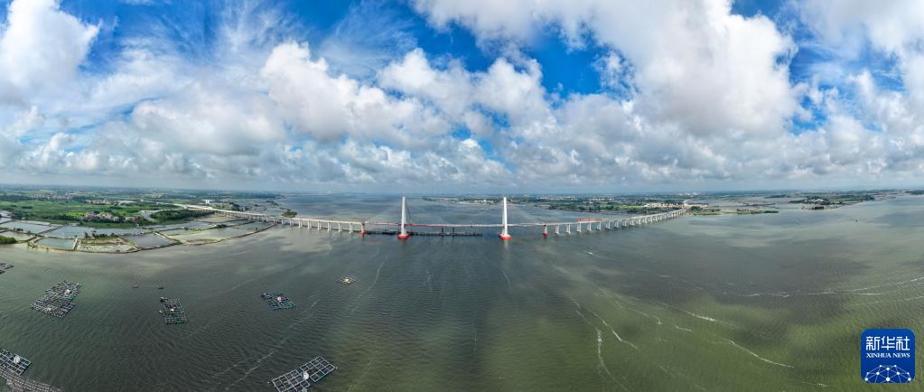 建設中的湛江鷺洲大橋(5月25日攝,無(wú)人機全景照片)。中鐵大橋局承建的鷺洲大橋橫跨南三島,建成通車(chē)后,當地居民出入島時(shí)長(cháng)將由45分鐘縮短至15分鐘,為南三島海島旅游發(fā)展奠定交通基礎。