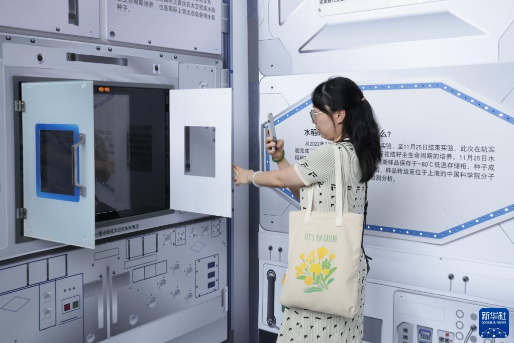 5月29日,參觀(guān)者在中國科技館“稻谷飄香,禾下追夢(mèng)——中國攻克雜交水稻難關(guān)50周年”展覽上拍照。
