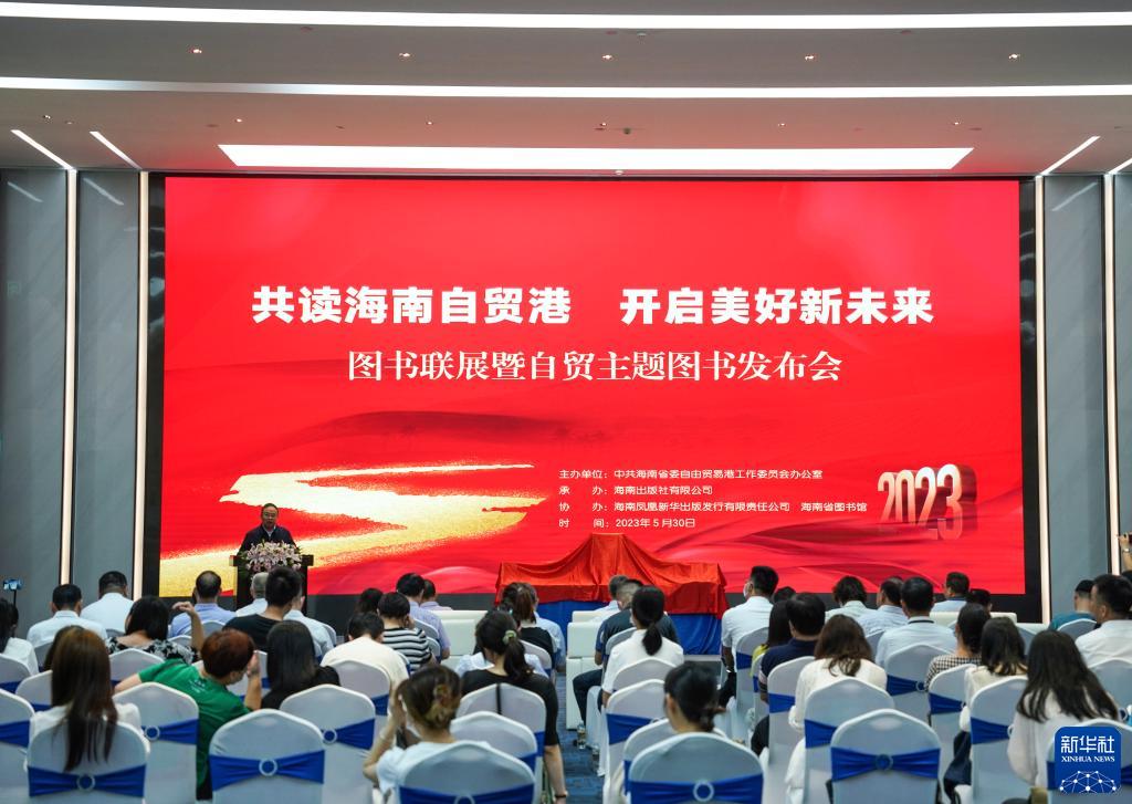 這是“共讀海南自貿港 開(kāi)啟美好新未來(lái)”圖書(shū)聯(lián)展暨自貿主題圖書(shū)發(fā)布會(huì )現場(chǎng)(5月30日攝)。