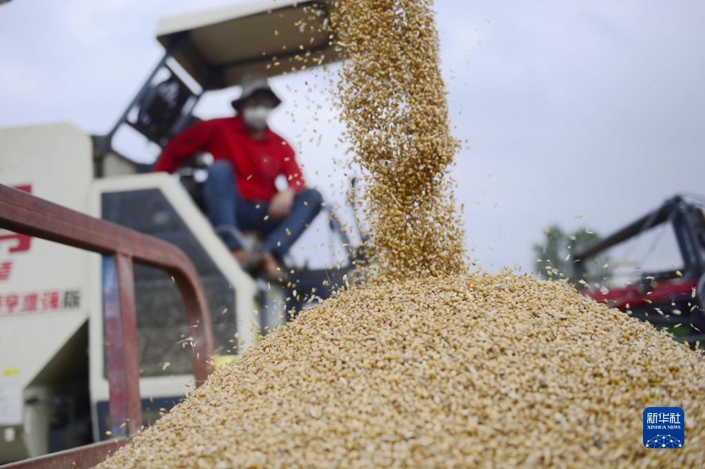 當日,河南省駐馬店市汝南縣雨歇,當地積極組織搶收已經(jīng)成熟的小麥,確保夏糧歸倉。