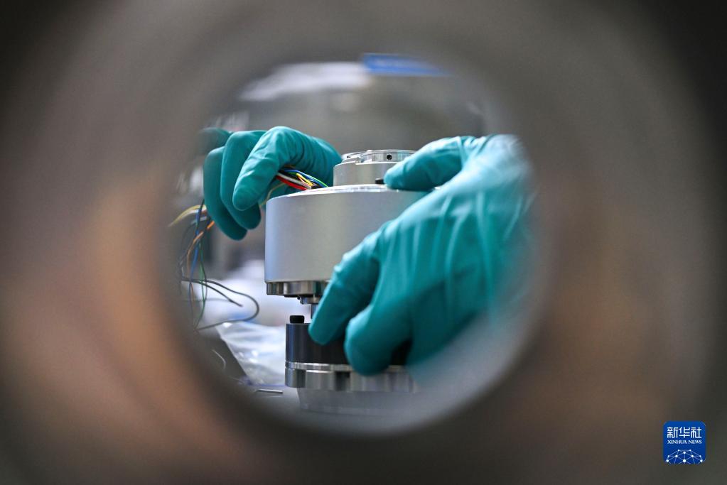 中國科學(xué)院空間光學(xué)系統在軌制造與集成重點(diǎn)實(shí)驗室科研人員組裝調試相關(guān)設備(5月25日攝)。