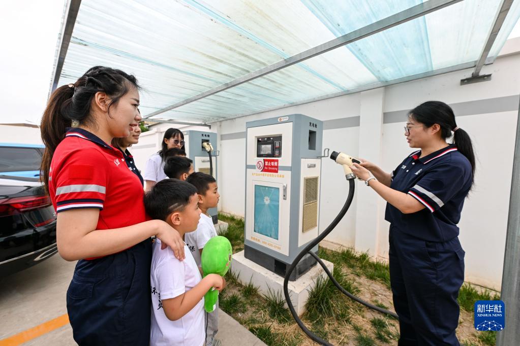 5月30日,在天津空港經(jīng)濟區西十四道綜合加能站,工作人員在講解充電樁設備運行安全注意事項。