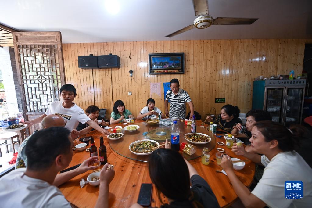 5月30日,游客在布袋坑村的農家樂(lè )里用餐。