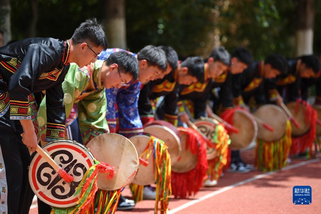 5月30日,四川省汶川中學(xué)高三學(xué)生用羌族羊皮鼓舞“減壓”迎高考。