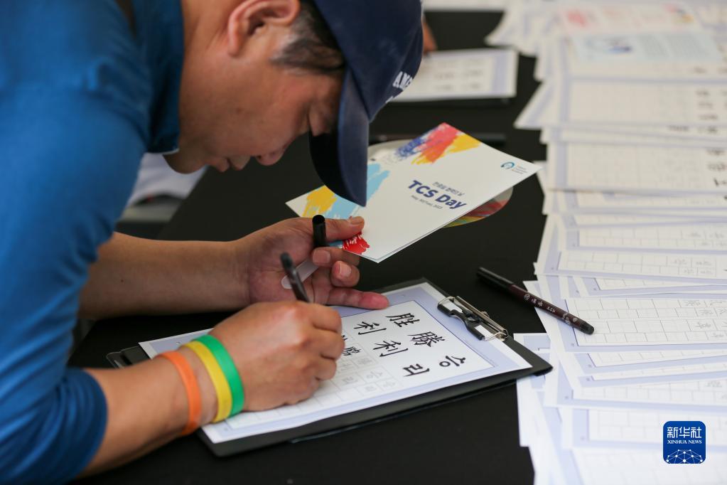 5月30日,在韓國首爾舉辦的“中日韓合作之日”慶?;顒?dòng)中,參與者體驗書(shū)法。