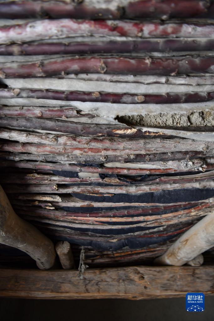 典角村“二代房”的屋頂是撿來(lái)的樹(shù)枝搭起來(lái)的(5月28日攝)。新華社記者 晉美多吉 攝