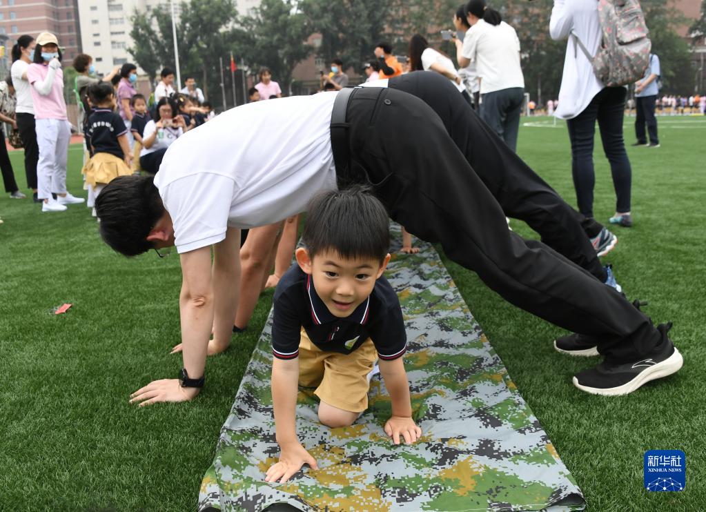 5月31日,在北京大學(xué)醫學(xué)部幼兒園2023年慶“六一”親子運動(dòng)會(huì )現場(chǎng),小朋友和家長(cháng)參與親子游戲。