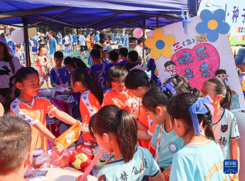 5月31日,在廣西南寧市濱湖路小學(xué),學(xué)生在參與“紅領(lǐng)巾公益市集”義賣(mài)活動(dòng)。