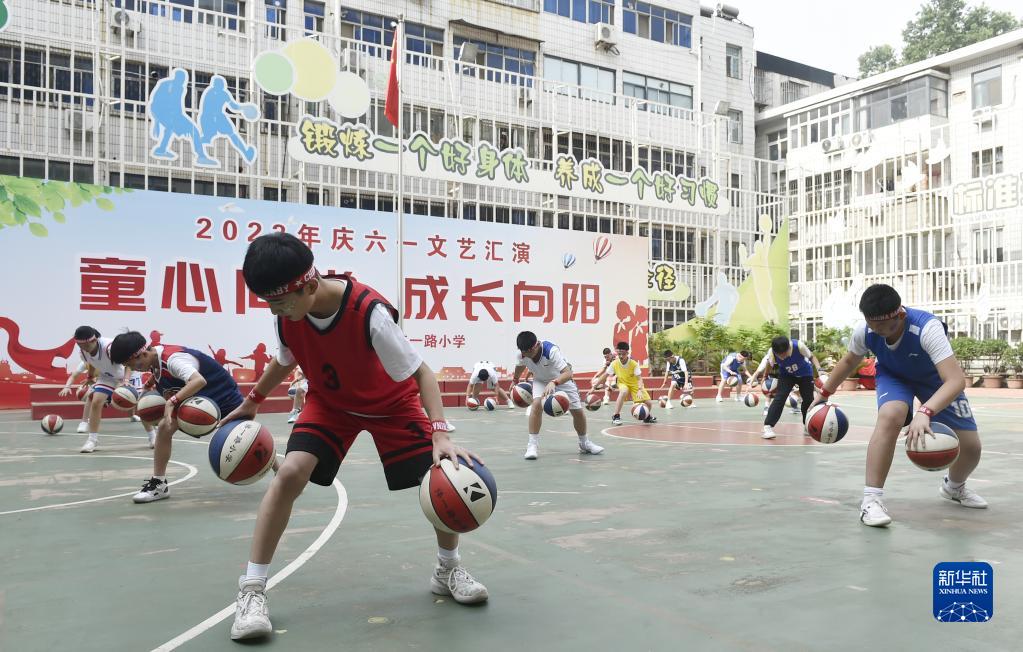 5月31日,在河南省鄭州市金水區緯一路小學(xué),學(xué)生在文藝匯演上表演。