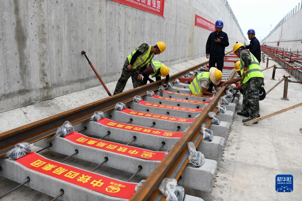 5月31日,中鐵四局施工人員在合肥軌道4號線(xiàn)南延線(xiàn)鋪軌現場(chǎng)作業(yè)。