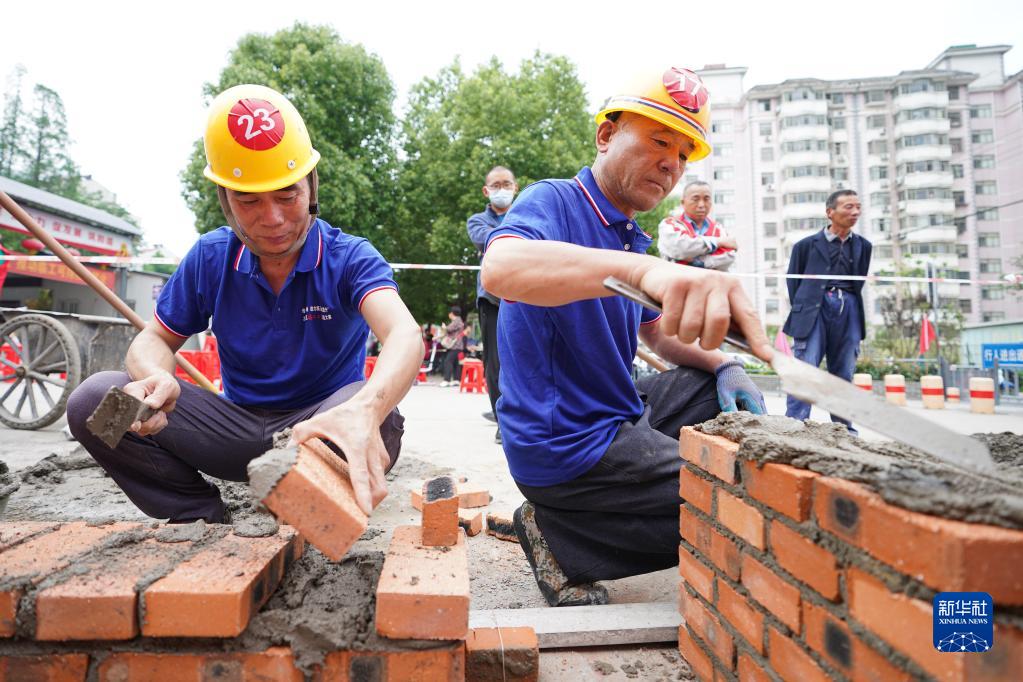 5月31日,砌筑工在進(jìn)行技能比拼。