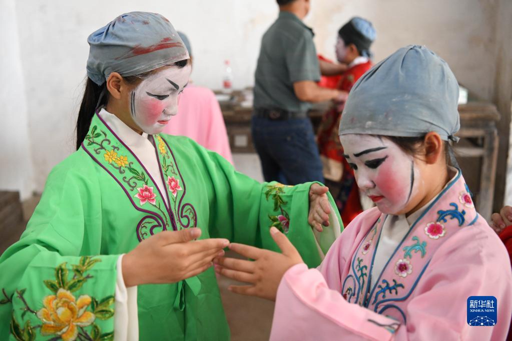 5月30日,伏嶺鎮中心小學(xué)“徽劇童子班”學(xué)生準備在徽劇展演上表演。