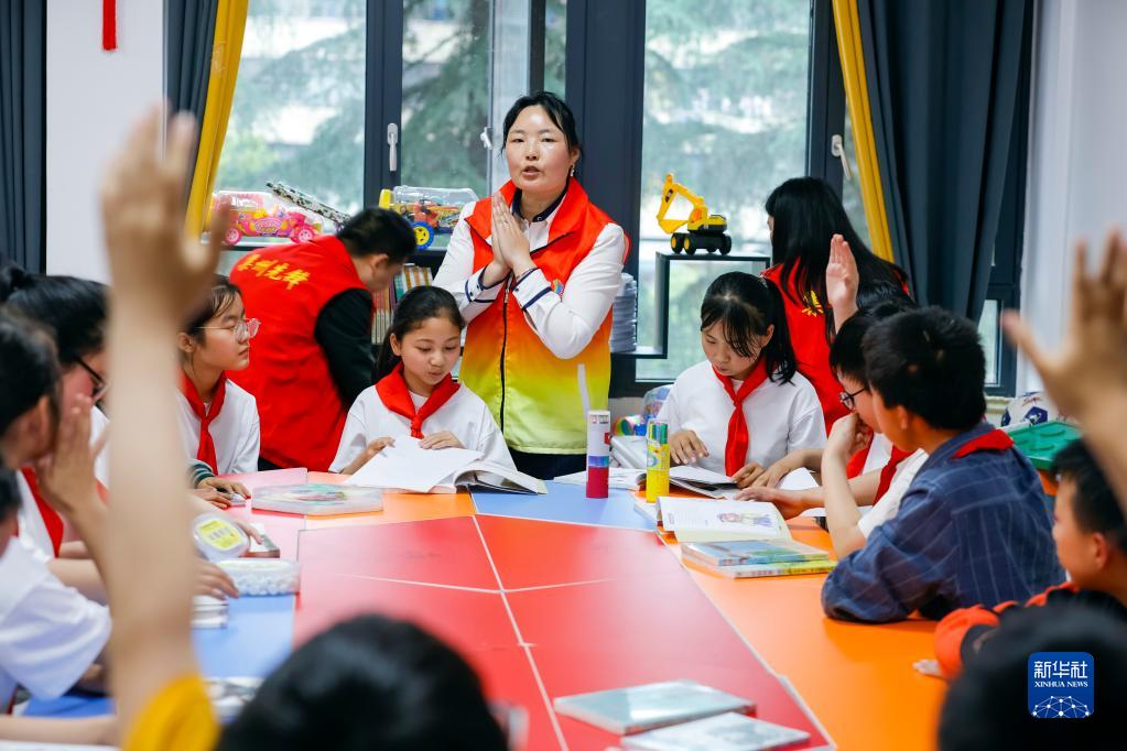 孩子們下課后來(lái)到四川巴中市南江縣集州街道楊家河社區的“童心港灣”,“童伴媽媽”吳莉就當天組織什么活動(dòng)征求孩子們的意見(jiàn)(5月25日攝)。