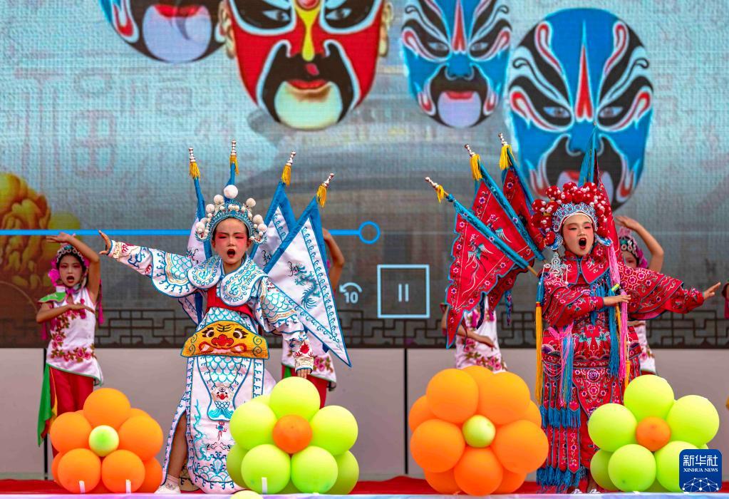 5月31日,在貴州省黔西市惠風(fēng)學(xué)校,學(xué)生在表演京劇。