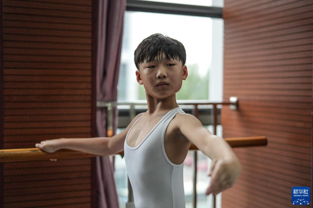 5月31日,遼寧芭蕾舞團附屬芭蕾舞蹈學(xué)校一年級的學(xué)生在上芭蕾課。