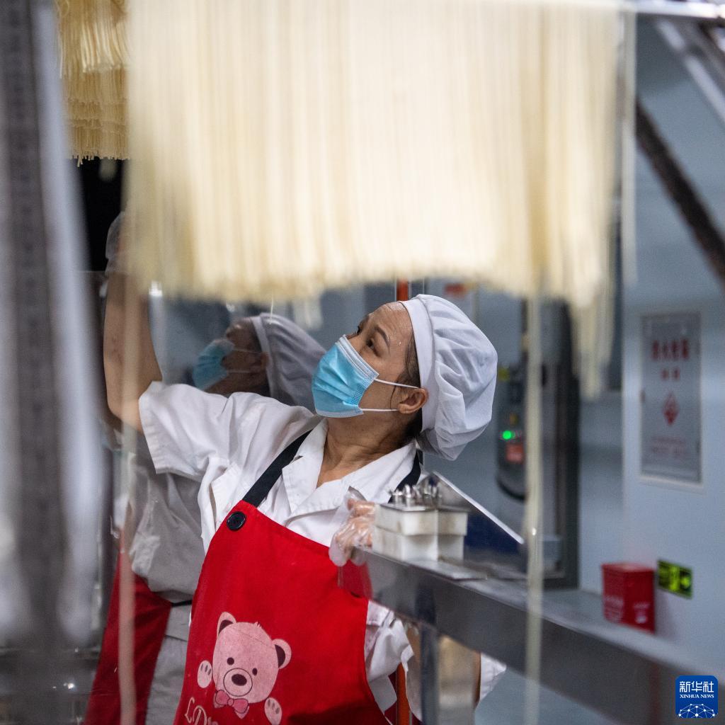 6月1日,在位于重慶市大渡口區的井谷元食品科技有限公司生產(chǎn)車(chē)間內,工人在小面生產(chǎn)線(xiàn)上工作。