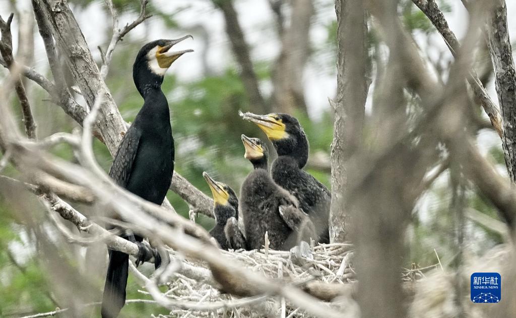 密云水庫“鳥(niǎo)島”上育雛的鸕鶿(5月31日攝)。