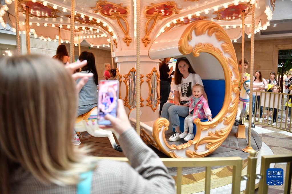 6月1日,孩子們在位于俄羅斯莫斯科市中心的中央兒童商場(chǎng)玩耍,慶?!傲弧眹H兒童節。