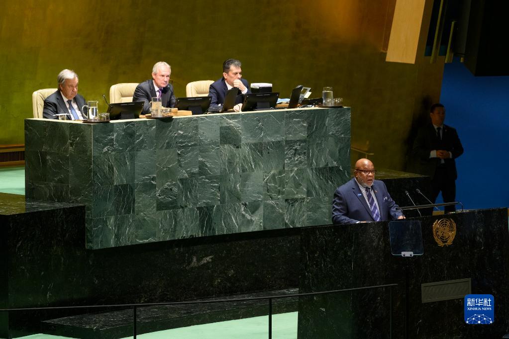 聯(lián)合國大會(huì )1日選舉特立尼達和多巴哥常駐聯(lián)合國代表丹尼斯·弗朗西斯為第78屆聯(lián)大主席。新華社發(fā)(聯(lián)合國供圖/洛伊·費利普攝)