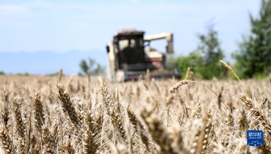 6月1日,在河南省濟源市軹城鎮洪溝村,農民駕駛聯(lián)合收割機在搶收小麥。