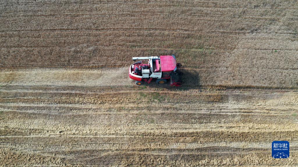 “三夏”時(shí)節,在合肥市蜀山區小廟鎮,農民操作大型收割機收割小麥,田間地頭一派忙碌景象。