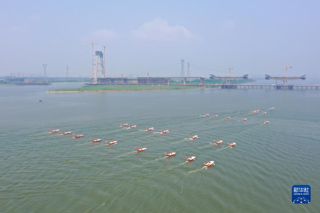 這是6月2日在水域救援實(shí)戰演習現場(chǎng)拍攝的消防舟艇編隊(無(wú)人機照片)。