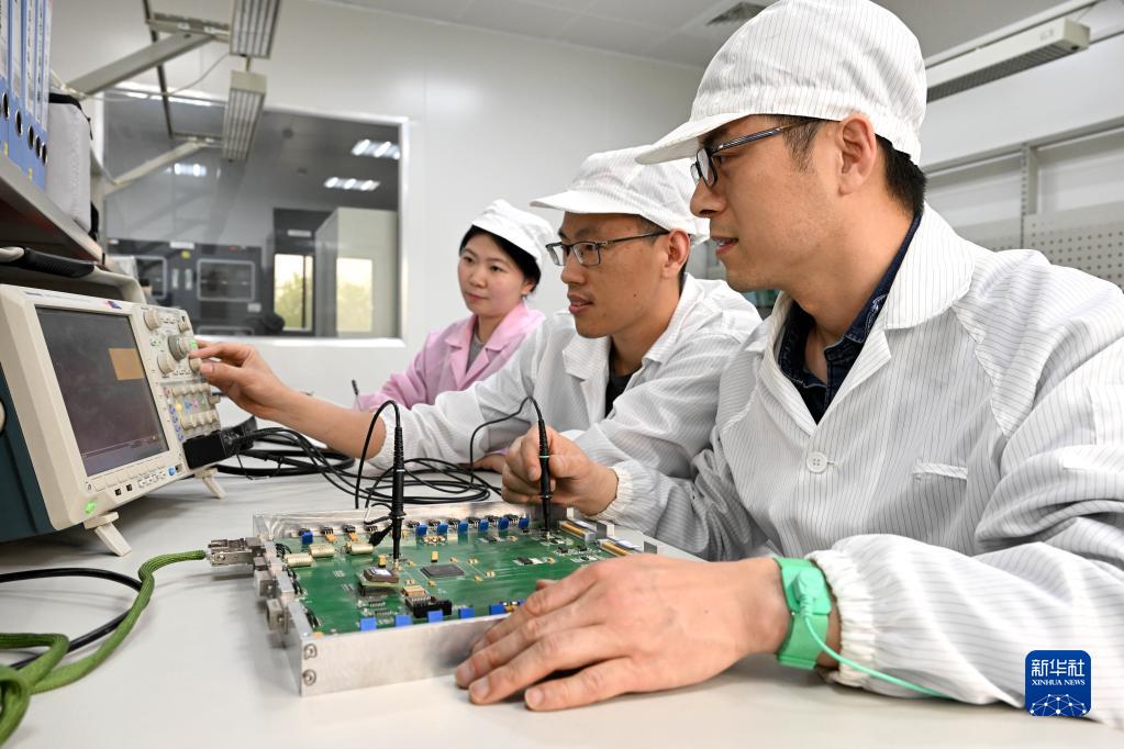 2023年4月18日,在中科院合肥物質(zhì)科學(xué)研究院,安徽光學(xué)精密機械研究所環(huán)境光學(xué)研究中心成像光譜技術(shù)研究室科研人員在測試CCD成像電路性能。