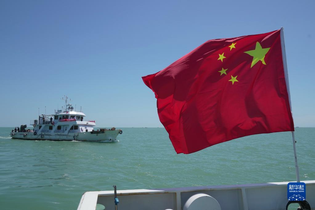 6月2日,參加增殖放流活動(dòng)的船只在向秦皇島市北戴河新區海洋漁業(yè)資源增殖放流基地海域航行。