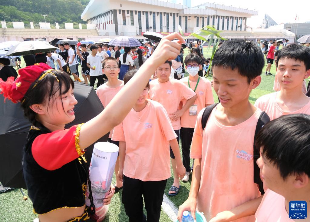 當日,廣西南寧市第三中學(xué)初中部青秀校區組織1500多名初三學(xué)生,在校園舉行潑水活動(dòng),以獨特方式讓學(xué)生們減輕考前壓力。