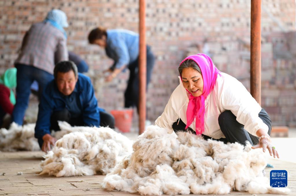 6月2日,在鄂爾多斯市鄂托克前旗,牧民收獲阿爾巴斯絨山羊羊絨。