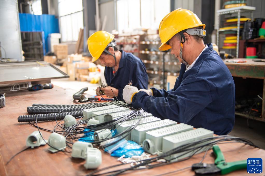6月2日,在位于婁底經(jīng)開(kāi)區的湖南樂(lè )立保電氣有限公司,工人在生產(chǎn)配電柜零件。