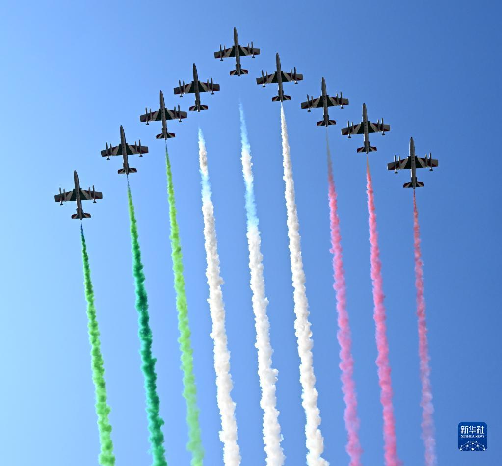 6月2日,意大利“三色箭”特技飛行表演隊在羅馬參加共和國日慶祝儀式。