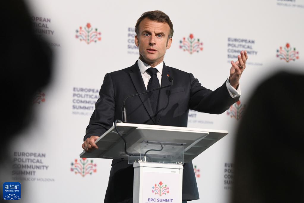 6月1日,在摩爾多瓦布爾博阿克,法國總統馬克龍在第二屆歐洲政治共同體領(lǐng)導人會(huì )議后參加新聞發(fā)布會(huì )。