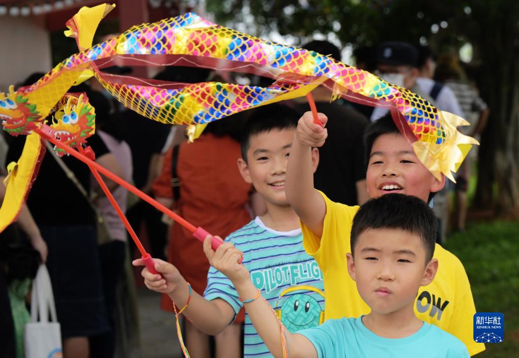 6月3日,廈門(mén)小學(xué)生在2023海峽兩岸(集美)龍舟文化節活動(dòng)現場(chǎng)體驗舞龍。