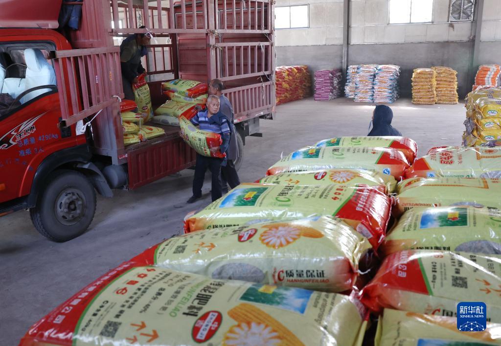 6月3日,河北省晉州市一家農資銷(xiāo)售公司的工人在庫房將農資卸下車(chē)。