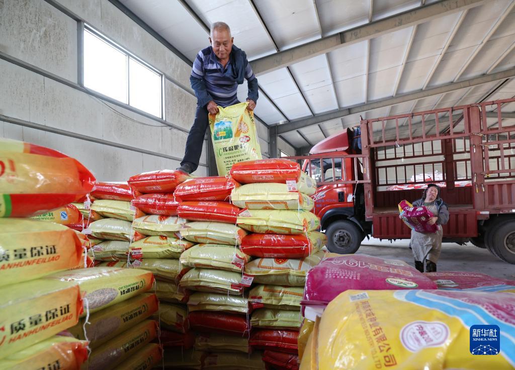 6月3日,河北省晉州市一家農資銷(xiāo)售公司的工人在庫房碼放農資。
