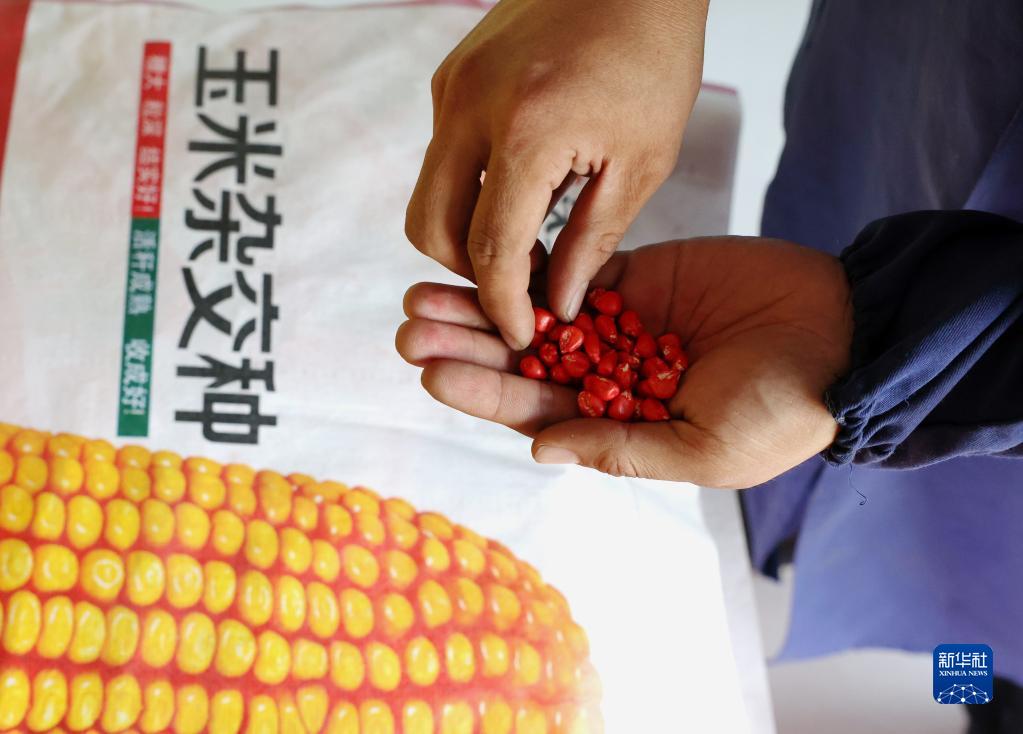 6月3日,在河北省晉州市一家種子銷(xiāo)售站,工作人員展示玉米種子。